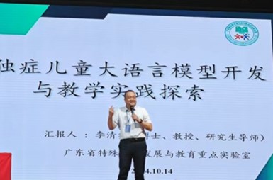 教育部基础教育司特殊教育与教学管理处处长黄伟以《健全特殊教育保障机制,强化特殊教育普惠发展》为题,围绕学习贯彻习近平总书记在全国教育大会上的重要讲话精神,特殊教育取得的新进展和面临的新形势、强化特殊教育普惠发展的有关思考三方面,深入解读特殊教育的普惠发展和相关政策改革。岭南师范大学李清华教授作的题为《孤独症儿童大语言模型开发与教学实践探索》的讲座,深入分析了特殊教育数字化转型的时代背景与重要性,分享了人工智能在特殊教育的应用案例,展示了其团队在孤独症儿童大语言模型的开发与教学实践探索,并提出了建立特殊教育大学模型的构想。