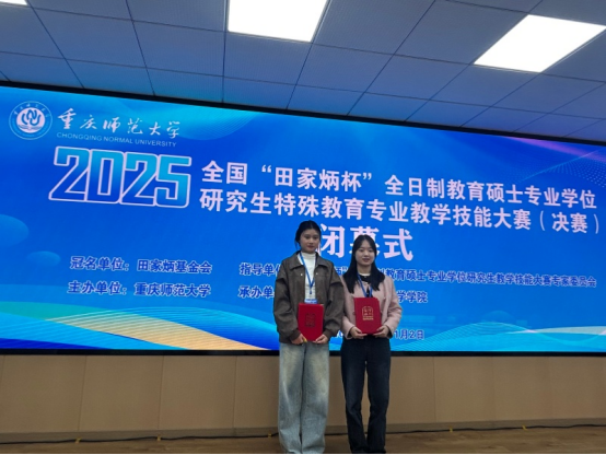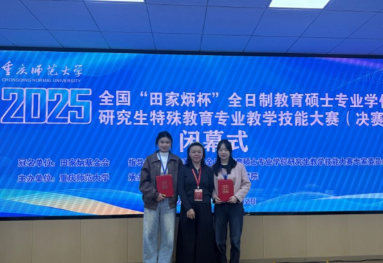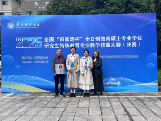 本网讯(文、图/胡瑾)2025年10月31日至11月2日,betway西汉姆联平台、康复学院教师李琳带领betway西汉姆联平台与西华师范大学联合培养的2024级硕士研究生胡瑾与周敏,赴重庆师范大学参加了2025年全国“田家炳杯”全日制教育硕士专业学位研究生特殊教育专业教学技能大赛决赛。