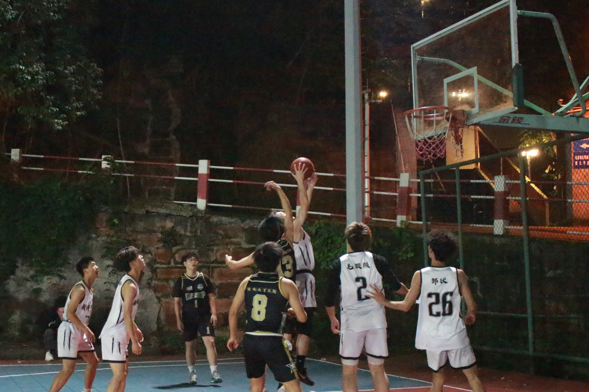 比赛伊始,男篮对决率先点燃战火。队员们迅速进入竞技状态,凭借默契的传切配合与精准的投射屡屡得分,新闻与传媒学院男篮紧咬比分。双方你来我往,场边观众阵阵喝彩。