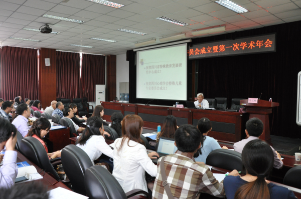 方俊明在《当代特殊教育的研究原理与范式》的报告中,从特殊教育的学科定位与研究特点、特殊教育的研究范式、我国当前特殊教育的发展趋势以及存在的问题三个方面谈了自己的看法。他指出,特殊教育不仅与教育学、心理学等一级学科有着密切关联,与基础医学、工程技术科学、公共卫生学等学科都有着密切的联系,特殊教育学不是单一存在的,而是现代高科技与人文精神的结合,有着广阔的发展与研究空间。他还特别介绍了认知神经科学的研究范式,通过ppt向与会者展示了认知神经科学在研究特殊儿童脑部神经方面的应用。