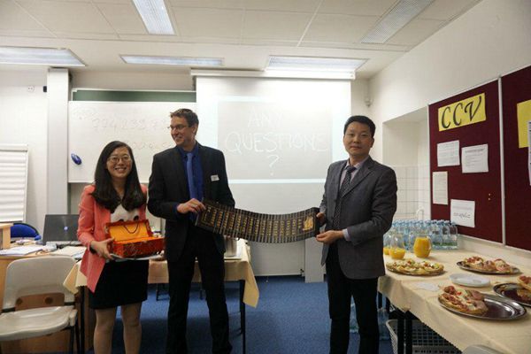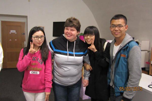 捷克当地时间2015年4月28日,天气晴转雨,就像今天早上的天气一样,大家似乎并没有受到昨天一天舟车劳顿的影响,上午十点过大家都积极的准备好参加捷克帕拉茨基大学的官方欢迎仪式,而这边大学的老师们也精心准备了冷餐会,大家就此轻松愉悦地完成了我们的第一次见面。佘书记和郭老师还精心准备了中国特色的礼物送给见面的老师。捷克的天气就像孙悟空的脸,说变就变,上一分钟还晴空万里,下一秒就变天,大家大风中参观了学校的教室及办公室,并在两位捷克美女的带领下顺利地换汇,下午接待老师热心的为我们讲解了捷克的交通,购物等注意事宜,并带领大家去超市购买生活必需品,大家在选好自己的必需品后顶着寒风和雨水,疲惫的回到了宿舍。