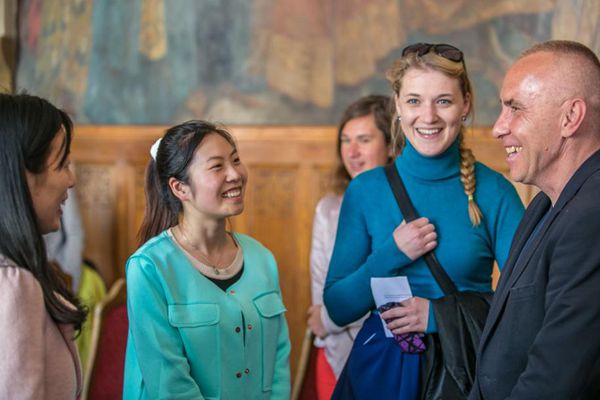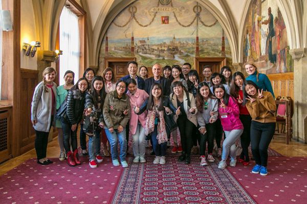 捷克当地时间4月29日,天气晴,上午在两位捷克美女老师的带领下,我们参观了奥洛穆茨历史中心奥洛穆茨的市政大厅,小伙伴们都很激动,纷纷用自己的自拍武器,进行着潮流的欧洲街拍,在路上两位美女向导热情的向我们介绍着捷克的美景美食,小伙伴们拍下了自己的美照,州长热情地接待了我们,贴心的为我们每人准备了奥洛穆茨的纪念资料,并为我们介绍了奥洛穆茨的现状,历史,文化,教育等,betway西汉姆联平台的郭老师也积极向州长提问有关奥洛穆茨州特殊教育相关的问题,州长也都耐心一一解答。下午来自立陶宛的老师第一次用全英语为我们上了一堂轻松幽默的艺术治疗课,让大家体会不同情绪的表达,以及在自己情绪中所占百分比。艺术治疗与特殊教育关联密切,特殊教育专业的同学们也都纷纷向老师提问,解答自己心中对艺术治疗的困惑。