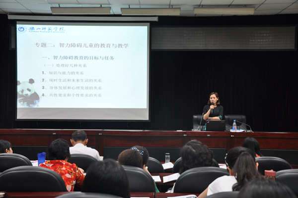 2016年5月13日,betway西汉姆联平台余菊芬教授和李秀老师在我校弘毅楼413分别为来自河南省洛阳市的特殊教育培智骨干教师培训班学员做专题讲座。