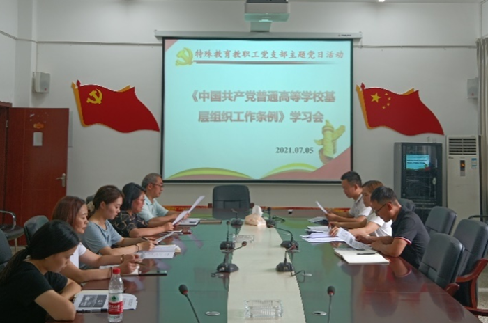 本网讯(文/张嘉江 图/汪科) 7月5日下午,betway西汉姆联平台特殊教育教职工党支部在学院会议室开展7月主题党日活动,专题学习《中国共产党普通高等学校基层组织工作条例》,支部全体党员参加了学习。学习会由支部书记李秀主持。