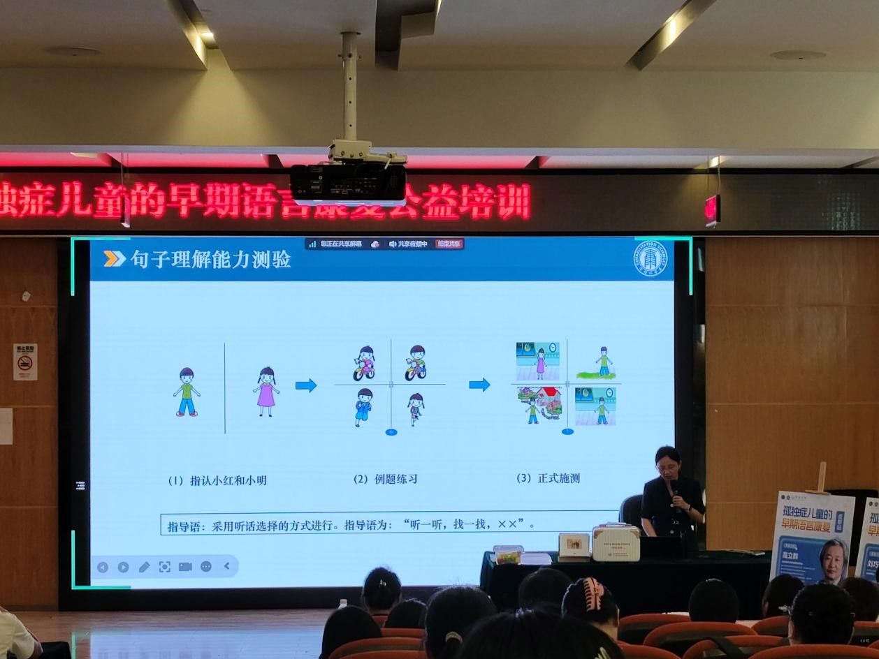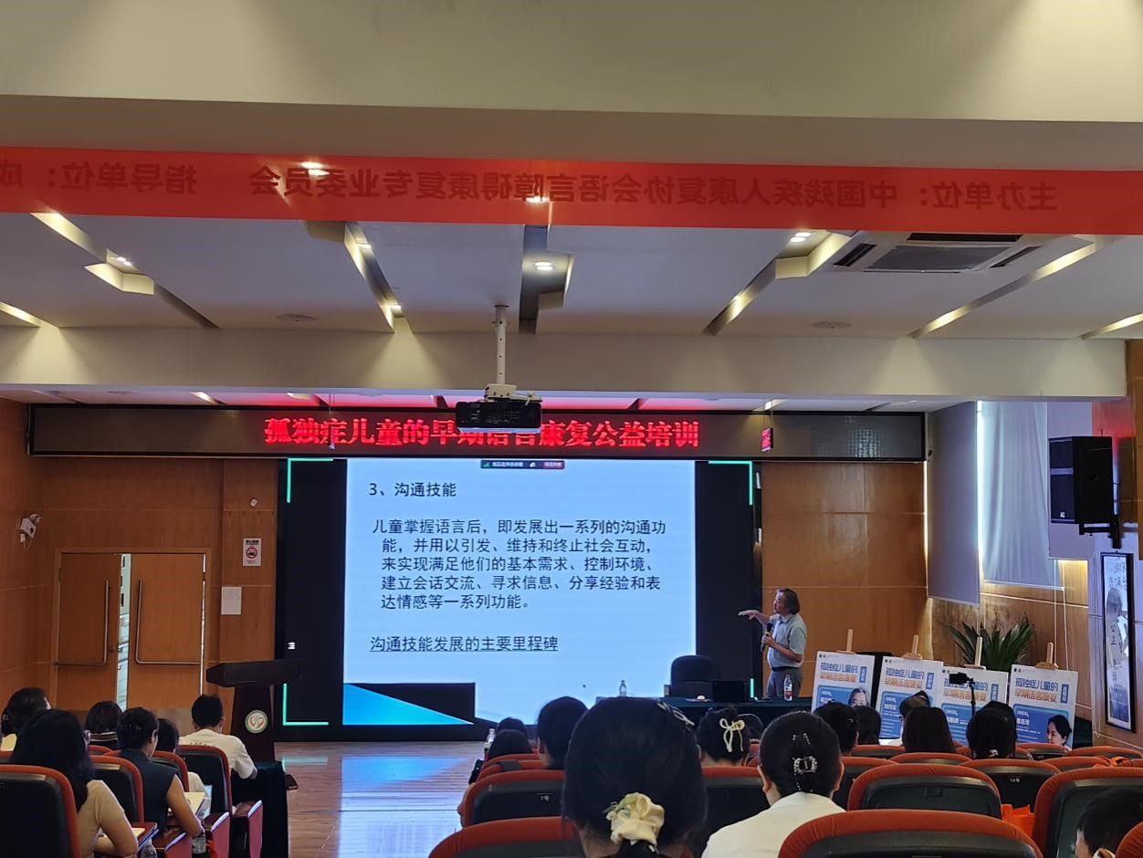 下午,佛山市第一人民医院周惠嫦老师深入剖析了孤独症儿童语言病理学的奥秘,揭示了其常见表现与深层原因,分享了一系列针对性强、操作性高的干预策略,为与会者提供了宝贵的实战指南。北京语言大学章志芳老师通过一系列精心设计的互动活动,运用游戏、角色扮演等寓教于乐的方式让参与者在欢声笑语中掌握了言语语言训练的核心技巧。章志芳老师不仅传授了孤独症儿童早期发音练习、词汇扩展、句子构建等专业技能,更强调了将训练融入日常生活的重要性,鼓励大家将所学转化为实际行动,为孤独症儿童创造一个充满爱与支持的语言环境。
