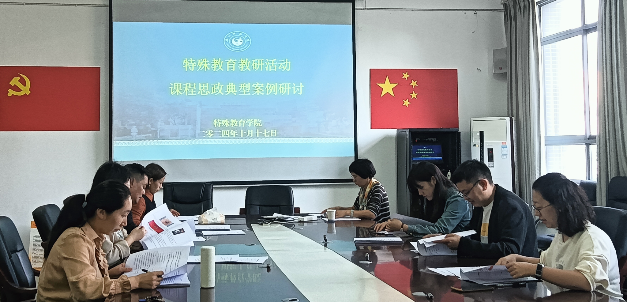 本网讯(文/图 王欢)为了落实立德树人根本任务,提升教师的课程思政教学能力和案例撰写水平,2024年10月17日,特殊教育教研室在特教大楼A栋408会议室召开“2024年课程思政典型案例研讨”教研会。会议由特殊教育专业教研室主任王欢主持。