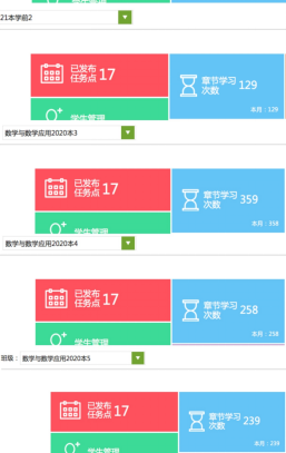 从学习通的统计数据来看,学生出勤率都基本达到100%,课程章节内容学习高达2168人次,95%以上的学生都积极参与了随堂测试、问卷调查和主题讨论。