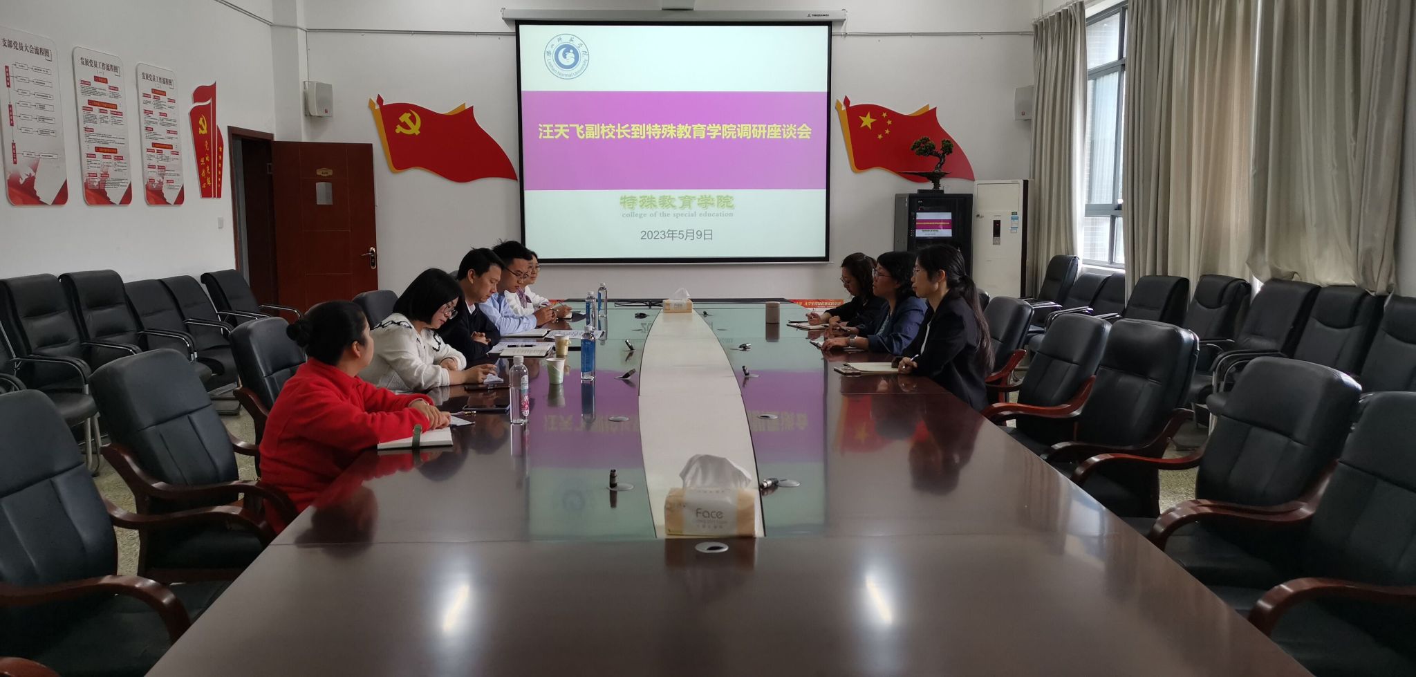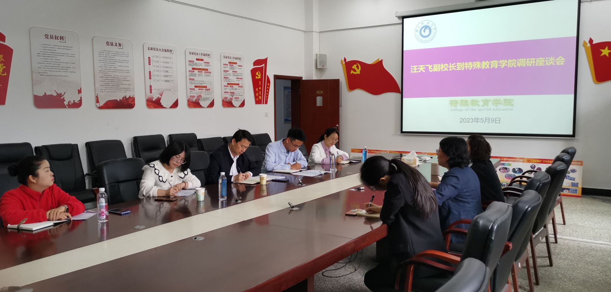 汪天飞认真听取了汇报,首先肯定了学院所有教职工的努力付出,同时也对学院发展提出了具体要求,一是加大高层次人才引进的步伐,要有危机感,尽快培养学科带头人;二是做好规划培育好教学成果奖;三是加强双师型教师队伍建设,安排教师到行业企业中跟岗学习;四是加快听障人员手语测试站的建设,培养测试员,做好国家通用手语推广工作;四是加强课程思政建设,围绕融合教育改革开展工作。