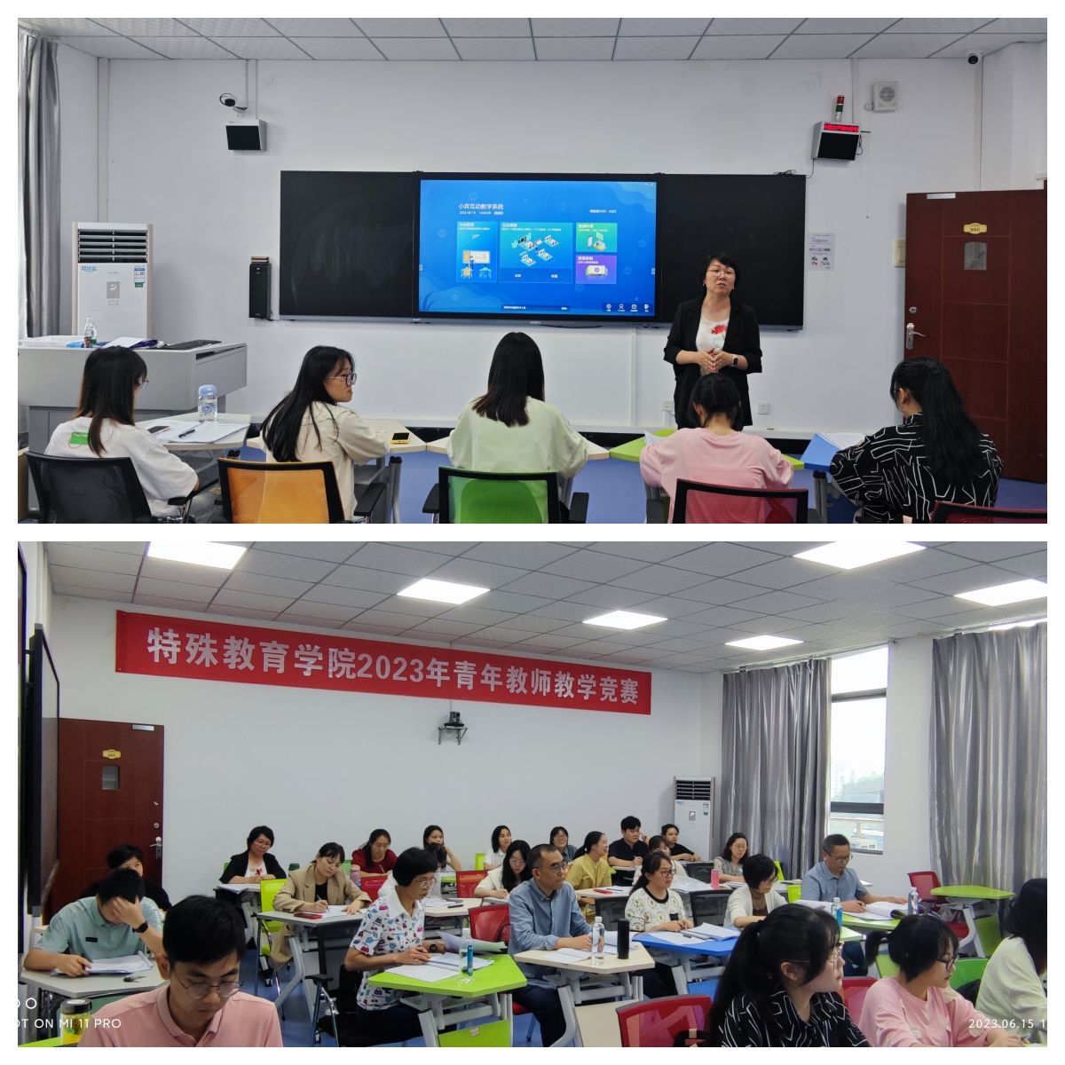 本网讯(文/汪科、王振洲 图/张嘉江)为进一步提升青年教师教学水平,提高人才培养质量,6月15日下午,特教学院在特教大楼A503开展了2023年青年教师教学竞赛暨学校青年教师教学竞赛选拔赛。此次竞赛由特教学院院长张梅主持,共有11名青年教师参与教学竞赛展示。特邀高仕龙、黄宽娜、杨宏、张继兰和余菊芬5名校级督导担任评委。学院全体教师观摩了竞赛。