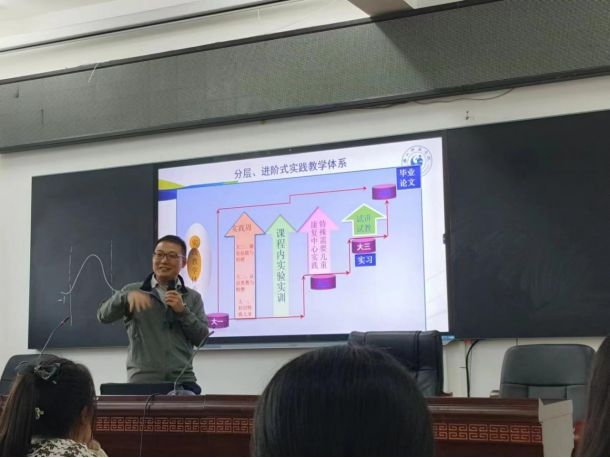 王振洲介绍了本专业的课程体系和实践环节。他说:本专业的课程体系包括通识教育、基础理论、专业核心、专业选修和实践环节。通识教育涵盖思想政治、大学外语、大学体育等;基础理论涉及教育学、儿童发展与心理学、特殊儿童病理学等;专业核心包括特殊教育导论、教育科学研究方法、特殊儿童诊断与评估、行为矫正原理与技术、个别化教育理论与实践、听障、智障、孤独症儿童发展与教育等;专业选修包括特殊教育学校语文、数学课程与教学等;实践环节包括试讲试教、教育见习、教育实习、教育研习、毕业论文(设计)等。他还介绍了本专业的教学方法和手段,如案例分析、小组讨论、角色扮演、模拟教学、微格教学、多媒体教学等,以及本专业的实践基地和合作单位,如特殊教育学校及相关康复机构等。