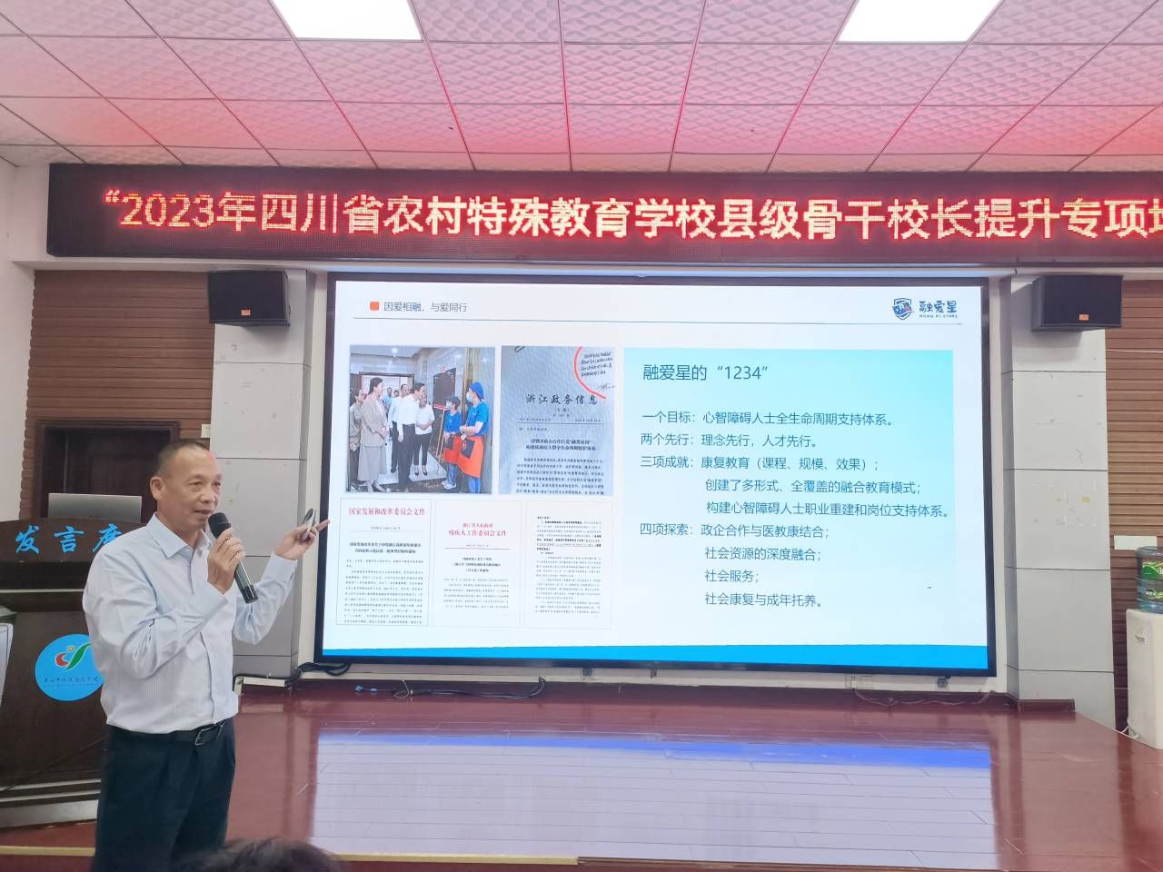 浙江海亮融爱星书记程大法围绕教育企业在特殊教育中的实践和成果作了题为《融爱星的特殊教育实践与思考》报告,教学主管宋阳围绕特殊儿童全生命周期课程体系的研发与实施作了题为《融爱星全生命周期课程体系的探索与实践》的报告,郭敏燕以企业管理者及孤独症儿童家长的双重身份,分享了孤独症孩子在海亮融合教育支持体系下取得的典型成效。