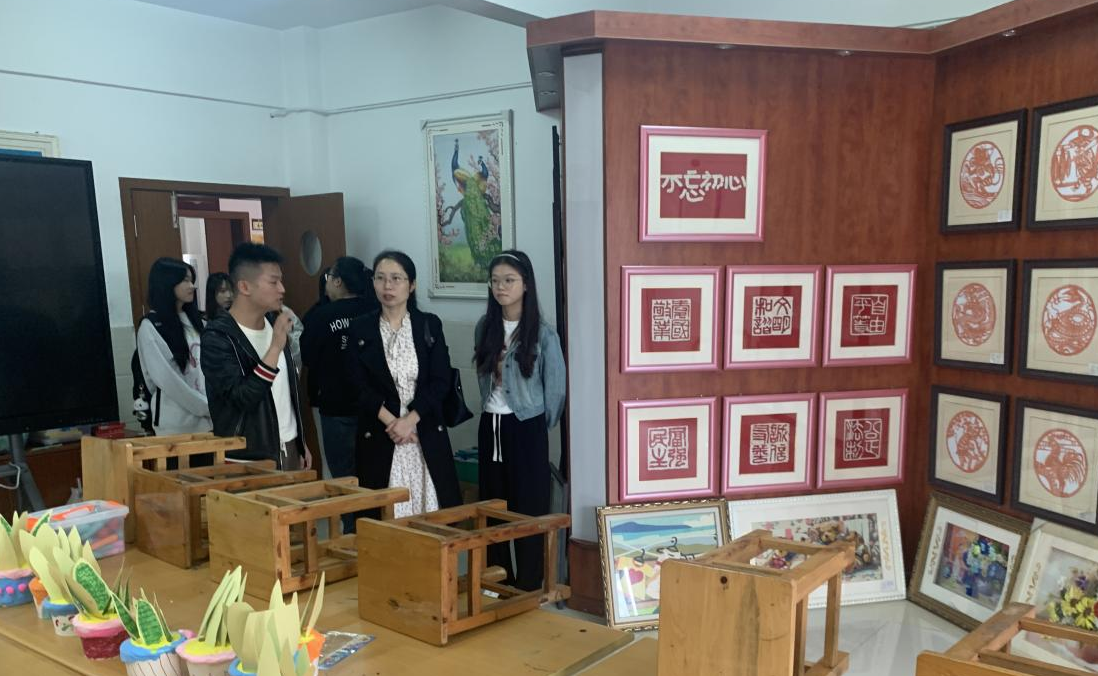 在泸州市特殊教育学校专职副书记王川、教务处文春容主任及培智七班班主任沈明馨的带领下,唐丹老师先后深入实习生所在班级、各功能室、手工艺品制作室等进行了教学环境的查看,听取了王川副书记对学校办学历史、育人理念和课程设置的介绍,了解了实习生的教学跟岗情况及参与实习学校各项活动的情况。