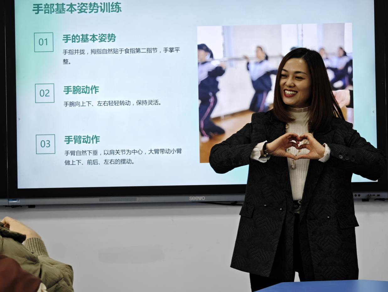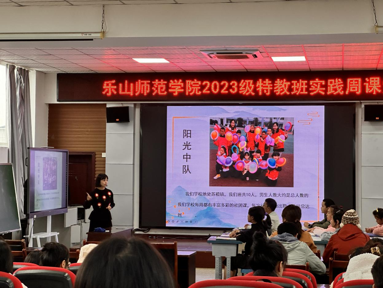 在特殊教育理念与方法方面,来自乐山市特殊教育学校的聋人教师王开敏老师以《各美其美、美美与共——点亮特校美育之灯》为主题,给23级特教3班的同学们分享了特校美育教育的理念与策略;刘玉菡老师不仅是乐山特校的教师,也是我校毕业的优秀校友,分享了聋校班主任工作策略;李贤平老师就聋校数学教学设计的策略与方法与同学们进行了深入分享交流。22级特殊教育4班先后聆听了乐山市特殊教育学校校长周成燕老师关于聋校数学教学的策略与艺术;王艳红老师就聋生律动教学方面,以课桌舞为切入口,将实操与讲解相结合,给大家带来了别开生面的感受;朱彬老师就聋校语文教学的策略与方法对同学们进行了细致地讲解与指导。