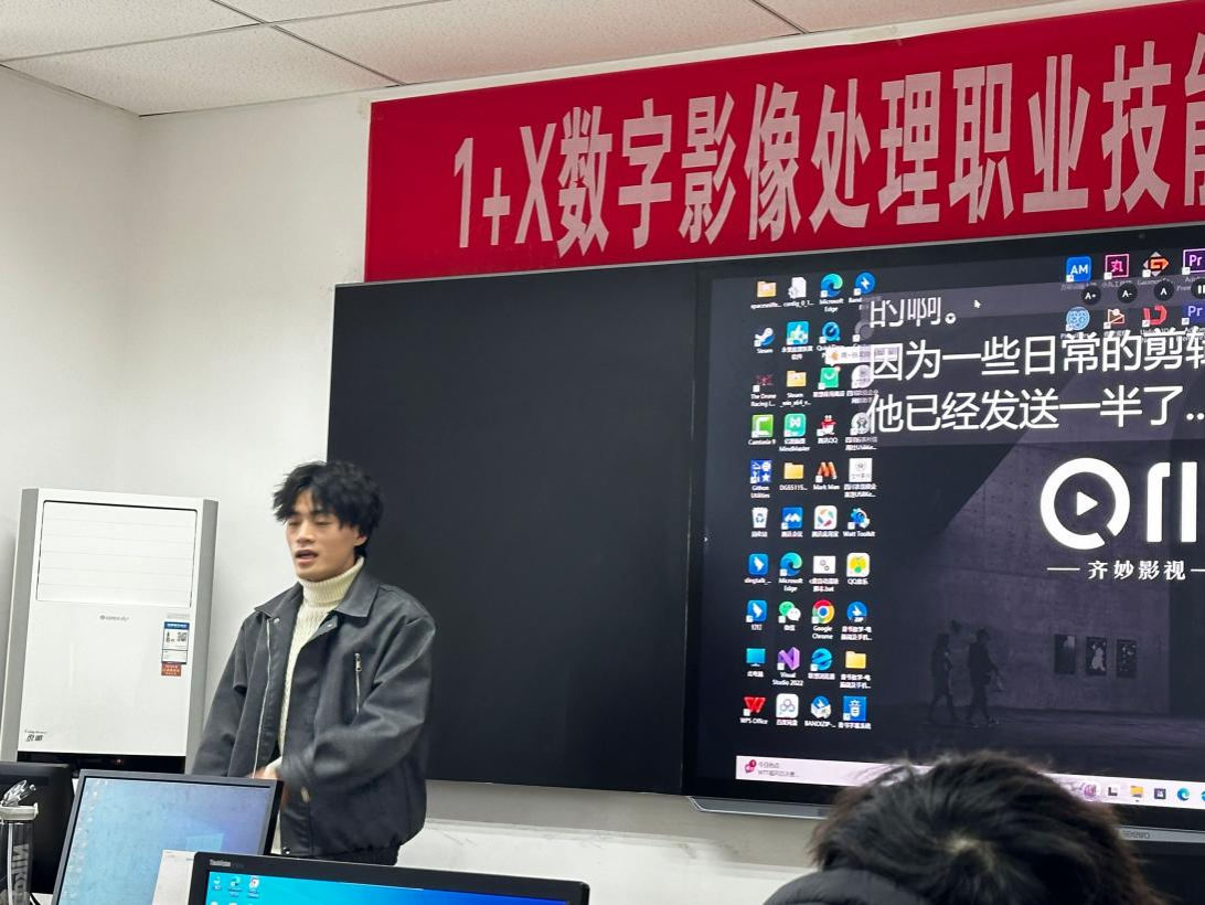 在职业技能培训环节,朱以荣老师为听障本科学生讲解了宣传短片制作方法与技巧,并进行了实操指导。朱老师还邀请我校美设学院的优秀毕业生、自主创业数媒公司的何修学长共同指导同学们的实操,同学们纷纷表示专业的讲解和指导让自己录制宣传短片的思路和技术明显地提升。
