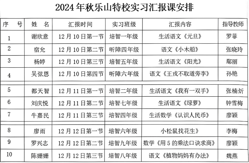 通过几个月的实习,同学们不仅在课堂教学上提高了专业技能,在班主任工作、家长沟通等方面都得到了锻炼,积累了丰富的实践经验;也将理论知识较好的运用到了实践中,同时还开阔了视野,对特殊教育学校的工作有了更真实的认识,对未来的职业发展之路画上了美好的一笔。(审核:魏欣)