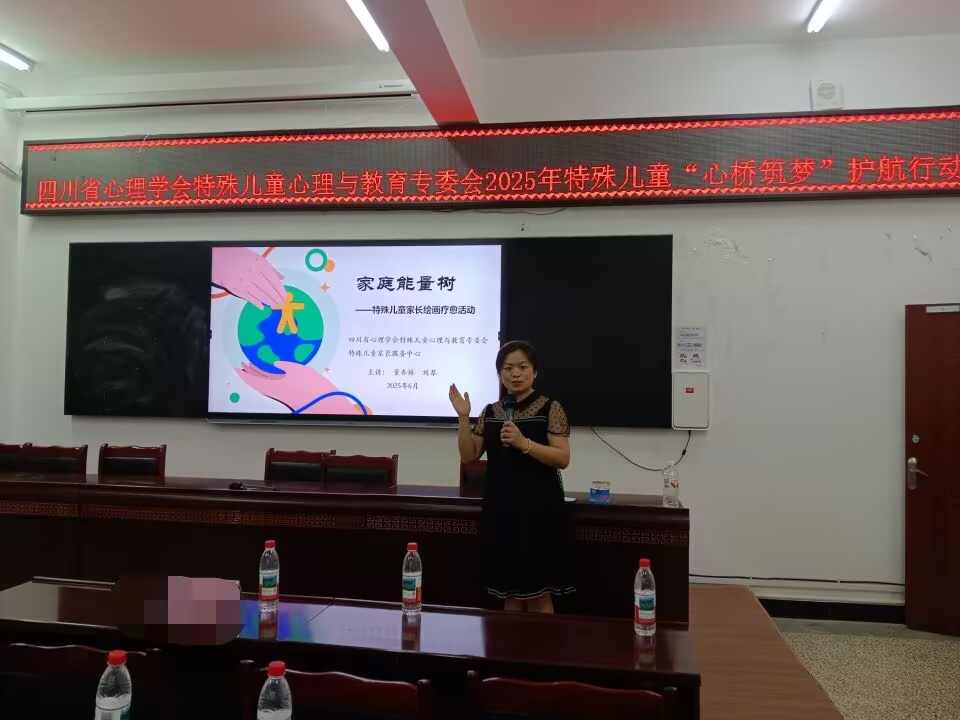 本网讯(文/刘琴、图/余梦) 2025年6月19日下午,四川省心理学会特殊儿童心理与教育专委会联合betway西汉姆联、特殊需要儿童康复中心,成功举办“家庭能量树”特殊儿童家长绘画疗愈活动。活动由特殊需要儿童中心主任郭玲博士主持,由专委会心理教师董杏妹、刘琴全程带领,30余名特殊儿童家长参与了本次活动。
