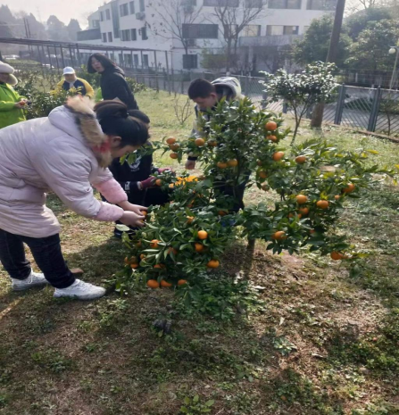 为了均衡在校就读的特殊学生全面发展,德阳市特殊教育学校特意为学生建造了一片属于他们的“小天地”,学生可以在自己班级所属的土地上播种农作物,从而体验“春耕”的乐趣。有些班级之前种的是橘子,所以当到了收获的季节时,在校长和一些老师的带领下,不少学生在劳动技能课上,自发去“果园”里面摘橘子。