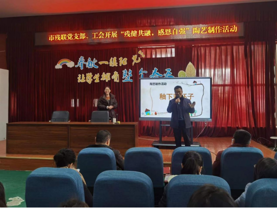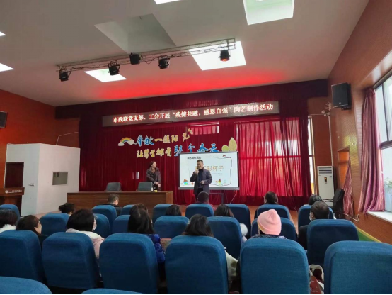 2021年12月24日下午3时,德阳市特殊教育学校学前部开展了本学期分组教研工作,在会议进行途中,眉山市康复机构来旁听教研活动,为德阳特校提出宝贵意见。随后,特校联合市残联党支部、工会开展“残健共融,感恩自强”陶艺制作活动,由陶艺老师陶渭红老师介绍陶艺制作过程以及陶艺种类。在介绍完陶艺后,陶老师又带领全校教师去陶艺室体验制作陶艺。