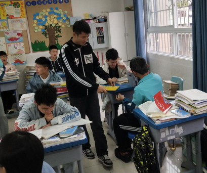 图一:邓冬梅晚自习给学生布置预习任务