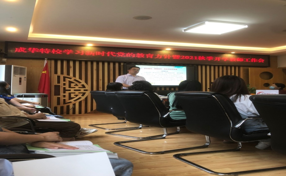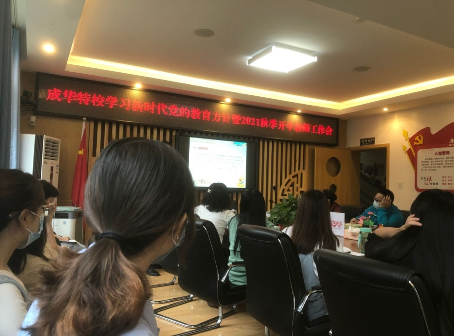 新学期开始啦!为促进教师全面发展,提高学校教育教学质量,成华区特校组织教师及家长开展了系列培训。开学教师工作会上,刘小龙校长做《怀揣梦想 勤思笃行——为了特殊孩子幸福美好的明天而接续奋斗》的学校工作主要思路报告,详细解读新学期疫情防控、基础目标、安全维稳、课程教学、德育工作、融合教育、课题研究、队伍建设、现代教学治理和后勤保障十个方面的任务目标。组织学习《新时代党的教育方针》,紧跟党中央的步伐。前路漫漫,道阻且长,行则将至,做则必成!随后各部门负责人进行近期工作安排,学校工作需要各部门、所有人的努力,聚沙成塔、凝心聚力,方能成就大事。