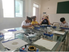 学校除了一些文化课程,还开设了音乐课、蜡染课、舞蹈、美术、体育、劳动等课程。比较重视学生各种技能的发展,并锻炼学生劳动能力。培智所有年级的学生都参与了音乐课,虽然学生的能力参差不齐,但还是有高年级的学生参与其中。聋生班的蜡染课也尽显了他们在绘画上的才能。