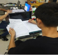 9月3日森林防火班会,我坐在在后面旁听向指导老师的讲课,一边学习一边记笔记本,也开始为学生批改作业。