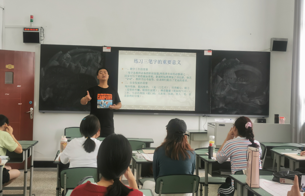 19级特殊教育(听障)3班实践周活动着眼于进一步拓展学生的专业视野,增强专业教育教学综合技能。先后邀请中公教育的专业讲师解析教师资格证考试大纲,邀请我院教师周丽岚进行听障普通话考试指导;邀请乐山特校教师王月友指导学生三笔字训练,通过校内外结合的专家团队进一步提升大二学生的专业教育教学综合技能。为促进听障学生获得更好的发展,邀请我院聋人教师毛毅主讲《听障大学生职业规划与学习指导》以提升大学学习的有效性;邀请教育康复学专业负责人李燕对该班学生进行语言康复指导和训练。