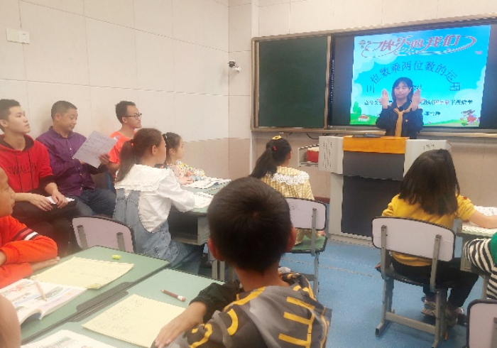 在逸夫楼六楼录播教室,同学们观摩了李雪静老师《三位数乘两位数的运用》的示范课教学。李老师运用讲解、小组讨论、游戏、实验操作、练习、引导发现等教学方法,充分发挥学生的课堂主体作用,将原本枯燥难懂的数学课,讲得清晰透彻。课堂上,小朋友们在李老师的组织下,积极思考,主动参与,同伴互助,让大家深受启发,联系本期学习的《聋校数学课程与教学》,让大家对聋校义务教育新课标的知识技能、数学思考、问题解决、情感态度四维目标有了更准确的理解,也对聋校数学课“复习导入-新知探究-练习巩固-总结反思-作业布置”等教学环节有了更加深刻的认识。