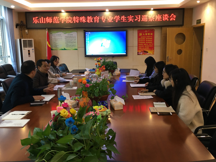 本网讯(文/唐丹 图/唐丹、生辉等) 11月30日-12月2日,betway西汉姆联平台党总支副书记(主持党务工作)刘宗泉与专任教师生辉、唐丹一道,先后前往眉山市仁寿县特殊教育学校、成都市双流区特殊教育学校、成都市成华区特殊教育学校、遂宁市船山区特殊教育学校,开展学院2017级学生实习巡视工作。