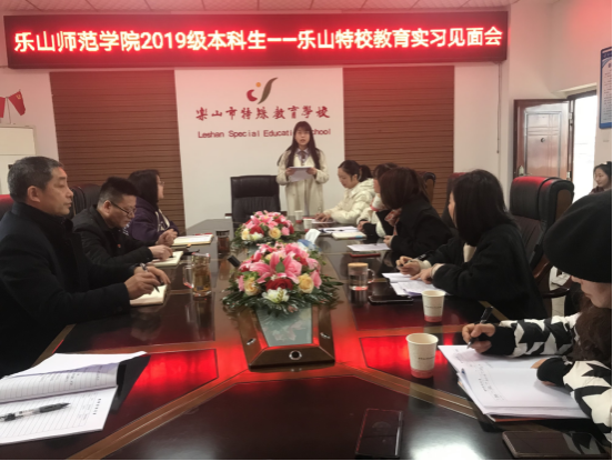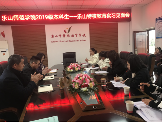 本网讯(文 图/李燕)为加强与实习学校的沟通,强化实习管理,提高实习效能。2023年3月2日上午,实习带队教师李燕到乐山市特殊教育学校参加教育实习见面会。本次见面会由乐山市特殊教育学校教务主任郭立丹主持,乐山特殊教育学校校长吴用、副校长周成燕、各个学科组组长以及全体乐山市特殊教育学校实习的学生参加。