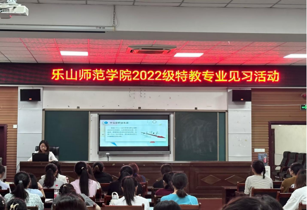 本网讯(图/文 杨羽彤)为落实人才培养目标,促进大学生理论与实践的结合,5月12日何欢、向方桃老师带领2022级特殊教育专业学生到乐山市特殊教育学校开展实践周活动。
