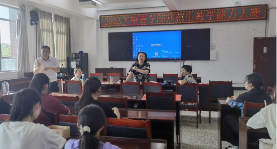 学校教学法教师廖娅辉强调了语文教学中学科素养的重要性,特别指出,在语文教学的过程中,要坚持语文学科工具性与人文性的统一,重点是工具性,要重视学生字、词、句、篇、写作等能力的培养,强调说课的重点应该是制定教案的依据以及达到的教学目标,而不是照搬照抄教案。