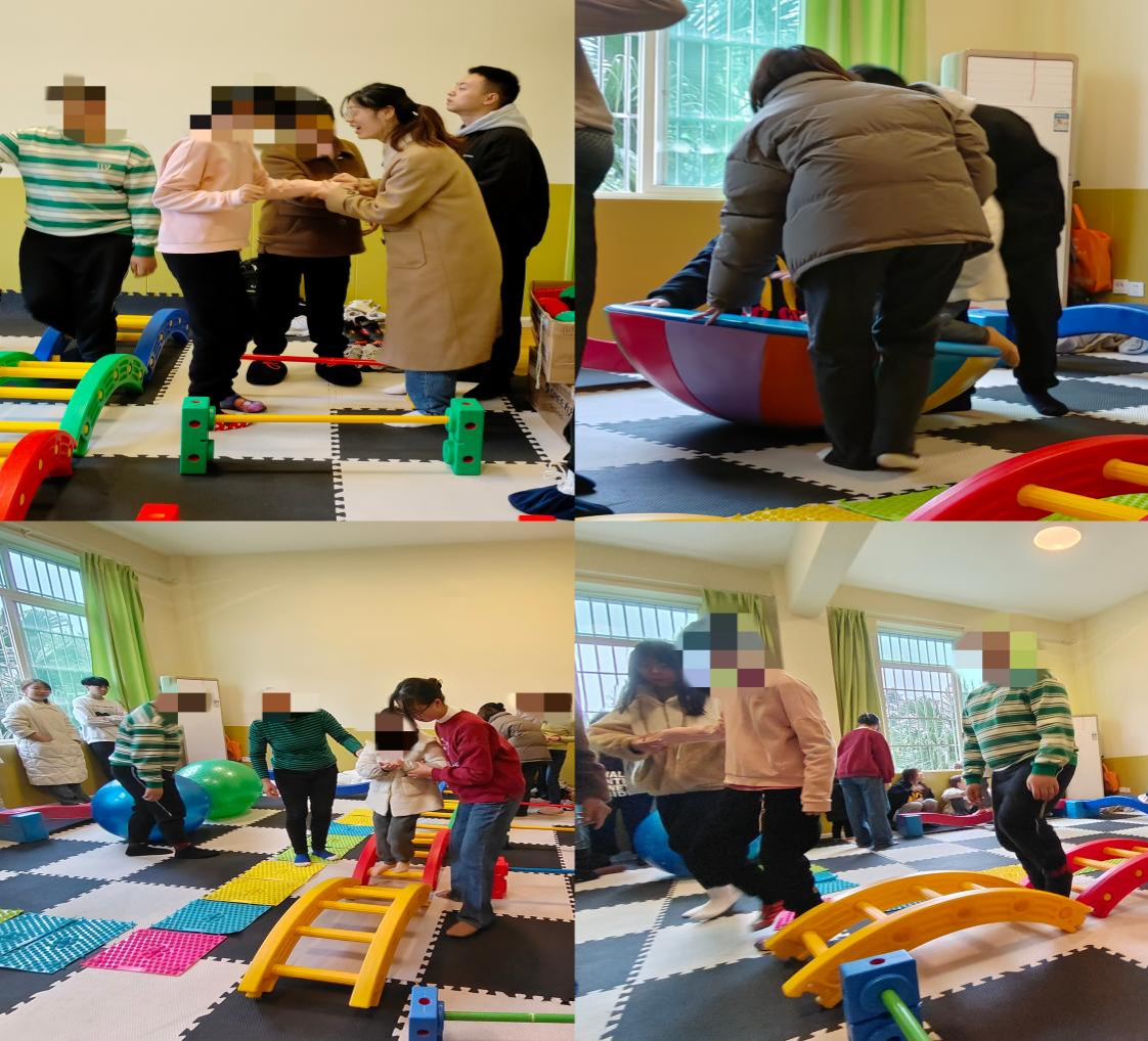 此次见习由两部分组成,一是参观康复中心,了解中心架构和环境创设。二是观摩课程,了解康复技术和操作流程。同学们一共观摩了两节课程,分别是感觉统合课和运动康复课。这两个活动各具特色,通过一定的康复器材和康复方式,为特殊儿童制定针对性的康复训练,极大的调动了特殊儿童的康复主动性。感统课上见习带教老师还让观摩同学参与教学,充分感受到康复活动的专业性。