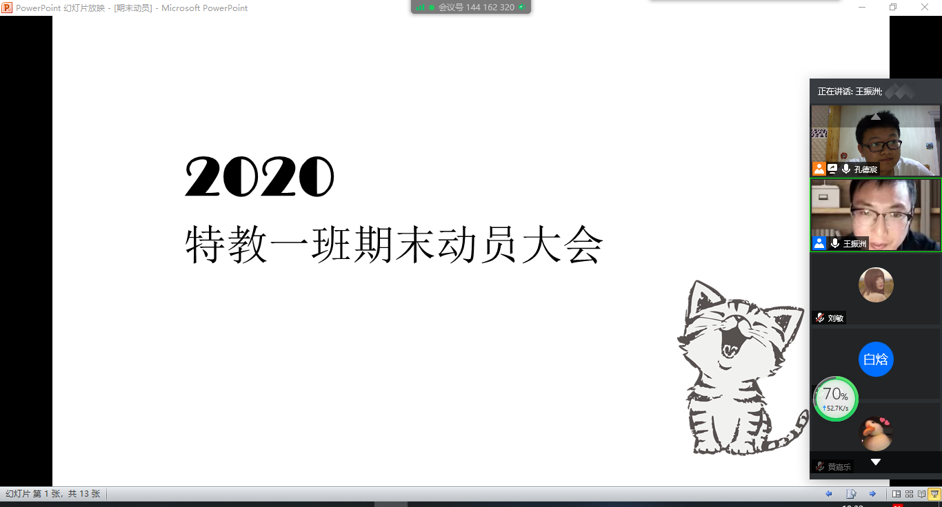 本网讯(文/陶易琳 图/朱志刚)为消除我院学生的学习倦怠期,共同分享学习状态,找到适合自己的学习方式,让居家网课学习变得更有效率,以更好地状态迎接期末考试,特教学院2019级各班于5月28日至6月1日陆续举行了线上学习生活分享会。