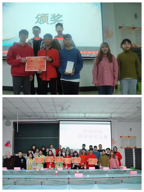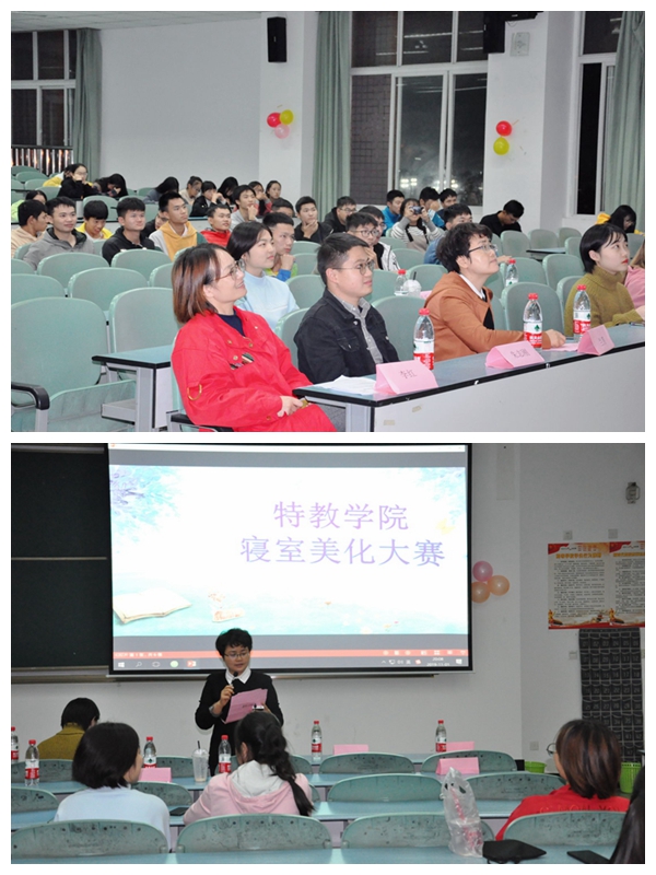 为了丰富学生的寝室文化生活,11月1日晚上7点,我院生活服务部在行知楼325开展了寝室美化大赛决赛。10月23日到10月25日,我院学生分会生活服务部对本次大会进行了宣传,并在10月26日由学生分会各部长从寝室卫生、寝室整洁程度及寝室美化等方面对各寝室进行评比,桂苑820、919,百果苑204、203、207、205最终进入到本次决赛。我院学生科科长兰芳、辅导员李红、辅导员朱志刚作为嘉宾出席,特教学院19级学生参加了活动。