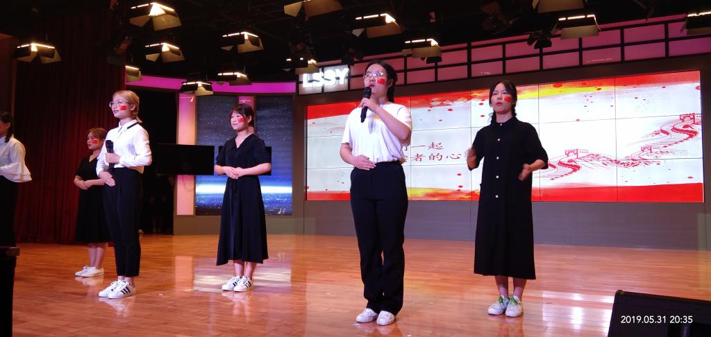 决赛共12支参赛队伍,各个小组依次按照赛前抽签顺序依次登台展示。比赛采用手语加朗诵结合的方式进行,吸引了来自文新、政法、化学等各学院同学的共同参与。选手们把丰富的手语动作和情绪饱满的朗诵相结合,或慷慨激昂、或青春活泼、或低沉婉转……,表达着新时代新青年的蓬勃朝气和对建国70周年的祝福与感怀。