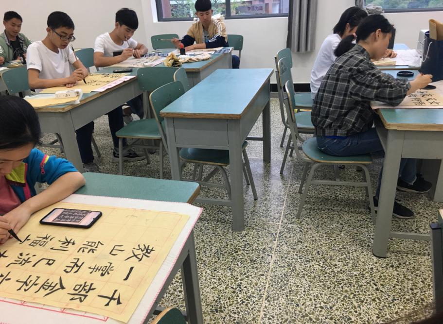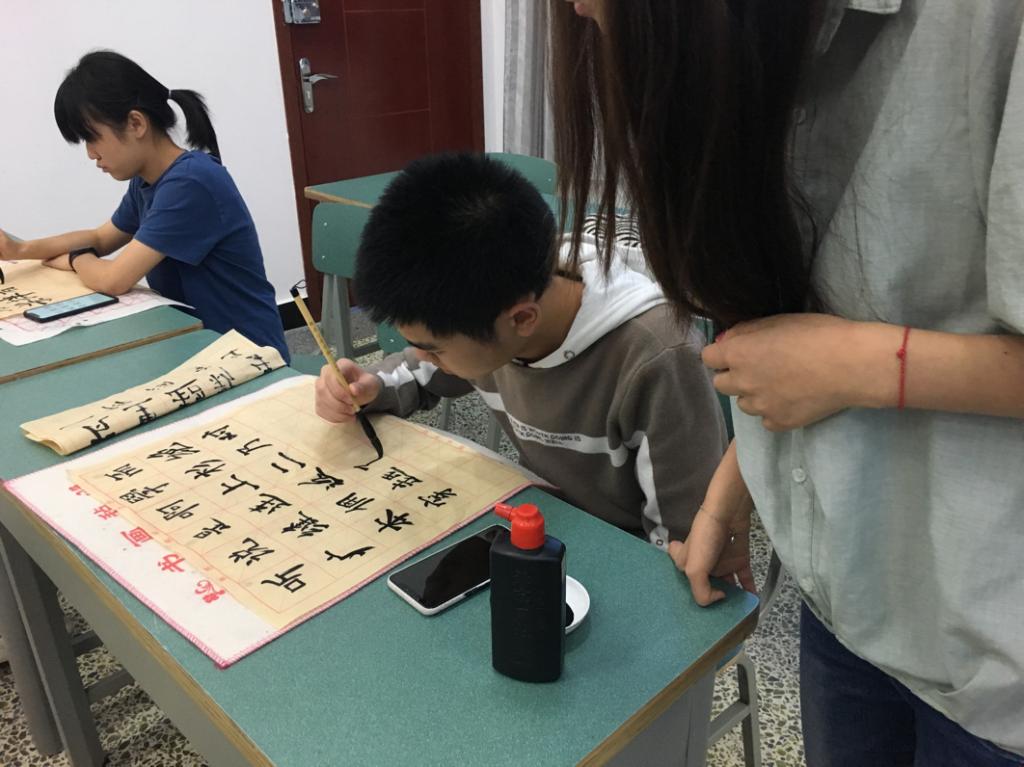 首先,同学们进行签到并上交了上节课布置的作业。接着,同学们按照书法书中的字体练习毛笔字,每一位同学都专心致志,刻苦练习,争取将每一个字都写得更好。在同学们练习毛笔字的过程中,老师们也观察了每一个同学的书写的毛笔字,并进行一对一示范与指导。在书写的过程当中,同学之间也互相借鉴,一起交流学习,争取取得更大的进步。
