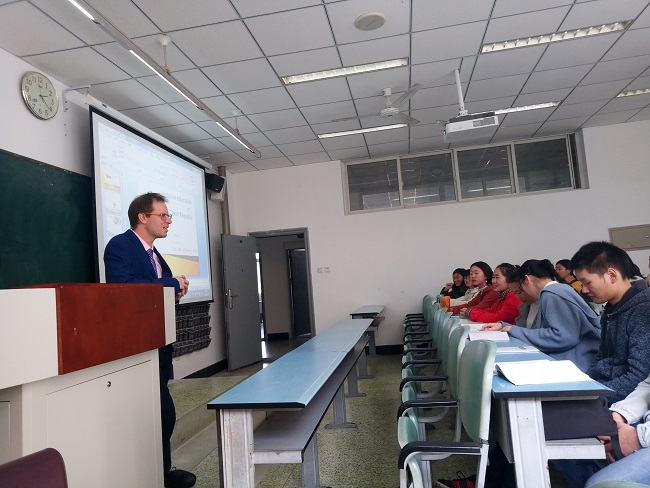 12月3日下午2:20,借助2016年度高端外国专家项目(文教类),来自捷克帕拉茨基大学教育学院的Jiri Kantor教授,在行知楼222教室为数信学院的46名学生做了主题为《捷克共和国的融合教育》的讲座。