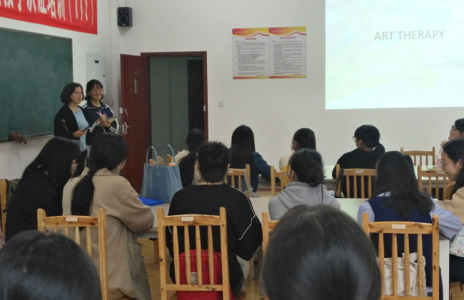 10月29日,借助2016年度高端外国专家项目(文教类),来自捷克帕拉茨基大学的Petra教授在特教大楼A栋208教室,开展了艺术治疗讲座和工作坊。活动由特教学院刘秋竹老师主持,2017级教育康复2班和2016级教康1班的同学参加了此次活动。