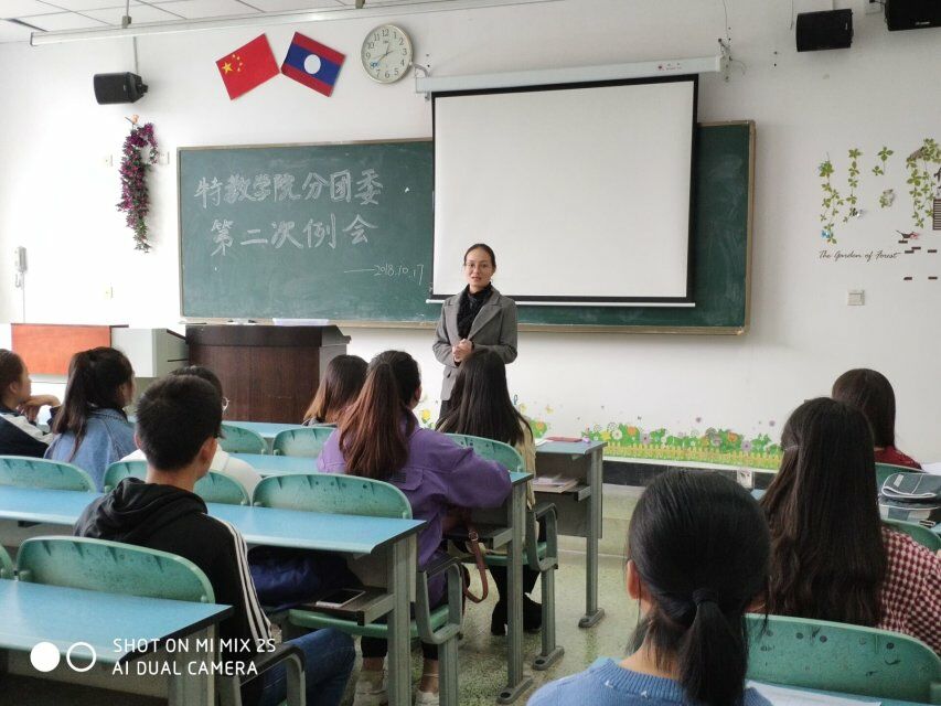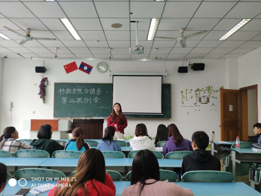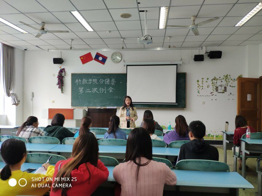 2018年10月17号日中午12点10分,特教学院分团委于行知楼123教室举行了第二次例会。参与本次例会的有分团委书记李红老师、副书记廖嘉奕、副书记洪朝辉、各部门部长以及分团委的30位小干事。本次例会由特教学院副书记廖嘉奕学姐主持。