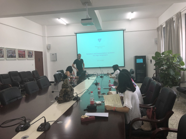 借助2016年度高端外国专家项目(文教类),9月20日上午,捷克帕拉茨基大学学术委员会主席Jiri Langer教授在特教大楼A408会议室,以《手语语言符号与转录系统(Notation and Transcription Systems for Sign Language)》为题为我院师生做了专题讲座。
