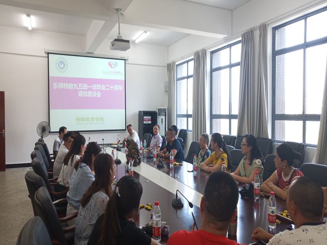 下午3时,在乐山师院特教学院领导的关怀中,大家在行知楼下见到了曾经的生物老师现在特教学院党总支书记林天兴老师、昔日特教专业老师今日特教学院副院长章永老师以及我们敬爱的班主任老师周世良、语文老师李禄玖、政治老师徐碧英,还有就是帅了一辈子的体育老师汪学连。看到了老师们和蔼慈祥的面孔,健康依旧的身板,所有的人都被那特别的场景感动了。随后的座谈会上,林天兴和章永分别就学校20年来不平凡的发展历程以及取得的成就向校友们做了详细介绍,所有到场的同学也汇报了自己辛酸而又幸福的成长心路。短暂的时间在不知不觉中度过,幸福的交谈让我们都仿佛回到了从前。