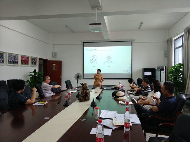 首先,汪红烨对到会的全体教师表示衷心的感谢,感谢他们对听障教学的支持和付出;同时,向各位老师详细解读了听障大学生本科和专科的人才培养方案,重点强调了人才培养目标和课程设置体系。张梅就听障教学课程中所涉及的课程教学大纲、教学计划、教学方法、评价体系、考核方式等提出具体要求,要求任课教师务必结合听障大学生的学习特点和能力,整合教学内容,探索适合他们的教学模式和方法,以达到最好的教学效果。接着,残疾人教学部主任刘琴以“听障学生身心特点”为主题介绍了我校就读听障大学生的基本情况,并向参会教师详细讲解听障学生认知、情绪及学习的特点,通过教学事例向老师们演示了听障教学的方法策略。张杨老师对参会教师进行了“课堂手语的培训”,内容包括手指字母、常用数字以及课堂教学常用语句,如“大家好!我是**老师”“ 这是本节课的重点/主要内容”“ 这是今天的作业,下次课交”等,与会教师手语学习非常认真并积极互动。